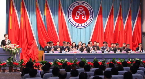 会上,刘书瀚校长作了题为的《注重内涵 科学发展 为建设高水平商业大学而努力奋斗》的工作报告。《报告》分为三个部分:一、一年来的工作回顾;二、当前面临的形势和任务;三、2009 年的主要工作。